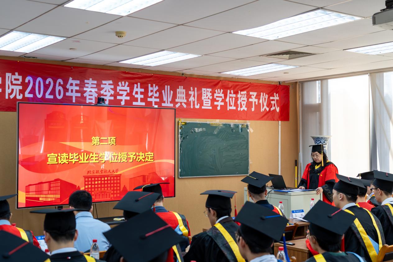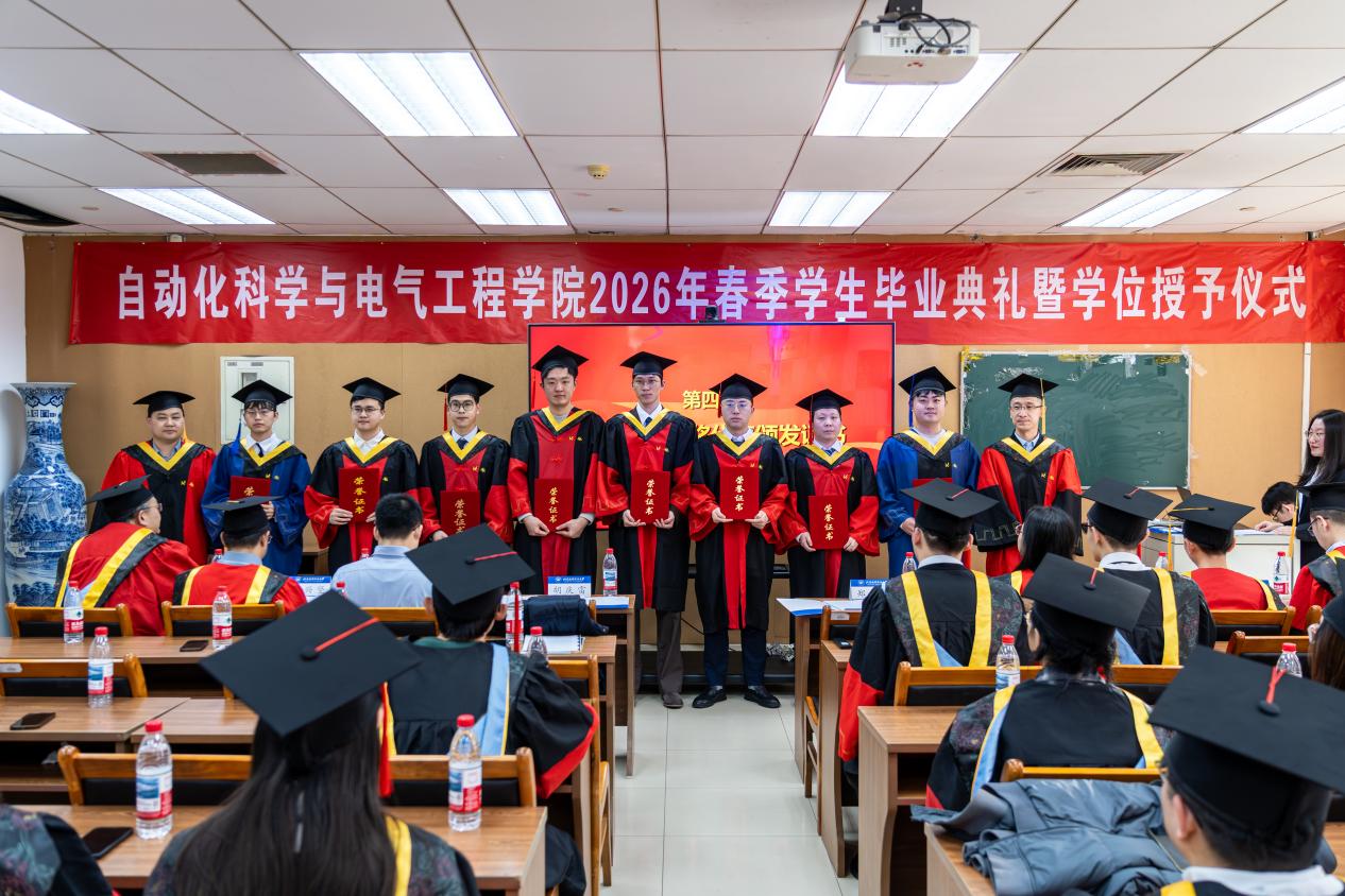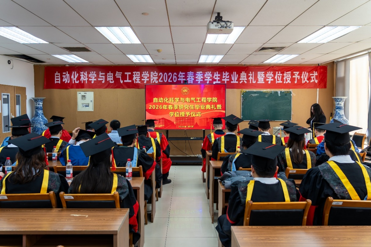(通讯员 娄锦昊 乔娇/摄影 郄家润)2026年1月5日下午15:00,自动化科学与电气工程学院于学院路校区新主楼E706会议室举行2026年春季研究生毕业典礼暨学位授予仪式。学院院长胡庆雷、党委书记郑征、党委副书记贾子超,副院长王薇、王兴坚、占帆,党委委员张海、院长助理张超,专兼职辅导员和硕士生、博士生共30余位毕业生代表及亲友出席典礼。典礼由团委书记乔娇主持。