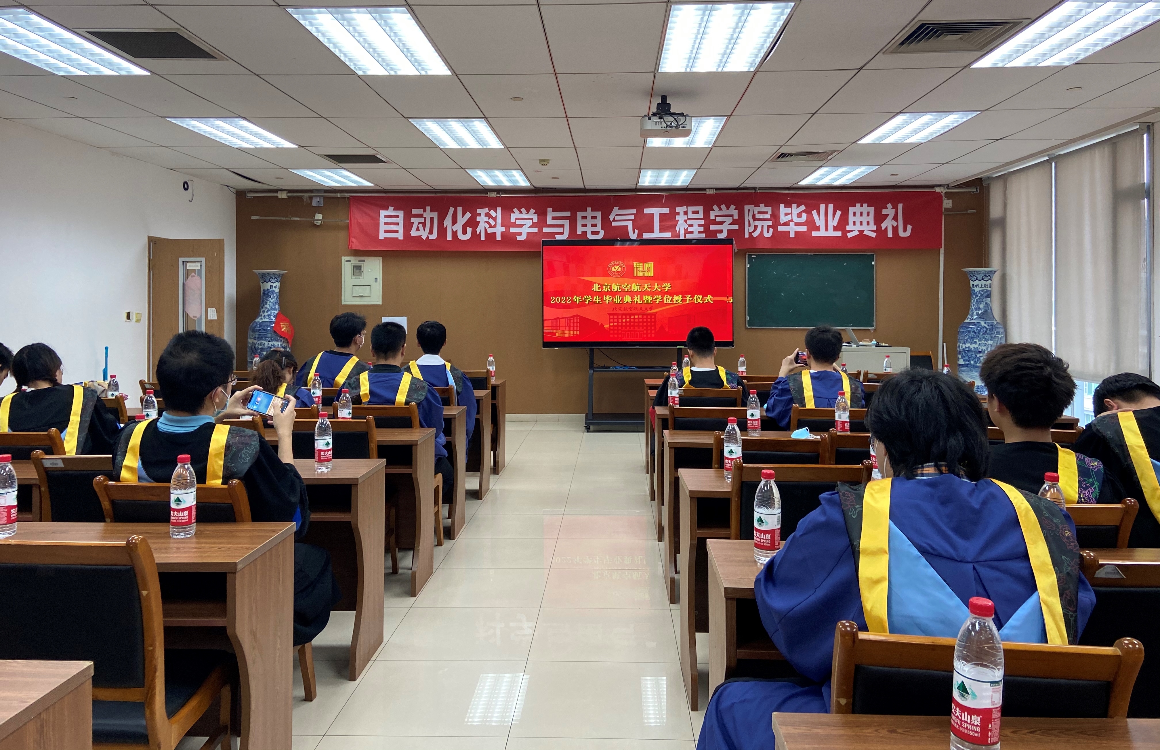 2022年6月18日上午9:00,北京航空航天大学于晨兴音乐厅隆重召开2022年学生毕业典礼暨学位授予仪式。自动化科学与电气工程学院196名本科毕业生,120名硕士毕业生和28名博士毕业生通过主会场、学院分会场以及居家的形式参加了本次毕业典礼,共同见证人生重要时刻。