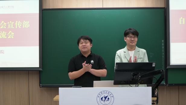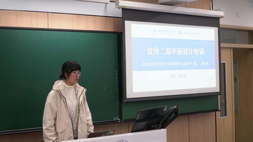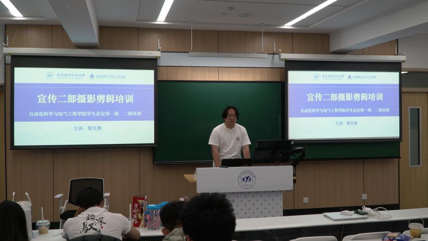 (通讯员 李皓天 魏猛宇 赵金昊)2025年10月12日晚,自动化科学与电气工程学院学生工作新闻媒体中心在主102教室开展宣传技能培训交流会。学院学生辅导员、新闻媒体中心主任易智恒、赵金昊,学生会与研究生会宣传部全体同学共同参与。本次活动旨在通过系统化的技能培训,加强团队建设,全面提升宣传骨干的专业素养。