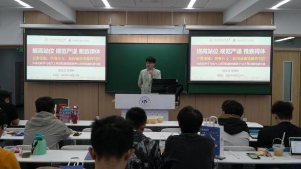 首先,两位辅导员向同学们详细介绍了新闻媒体中心的基本架构及审核管理制度,强调了对外建设以“遇见北航Sasee”为核心,构建一主六辅的公众号与视频号融媒体矩阵的目标,对内要加强思政引领,构建育人生态,强化新闻素养,提升宣传效能。之后,两位辅导员为同学们做事务公文、新闻通讯等稿件写作专题培训。