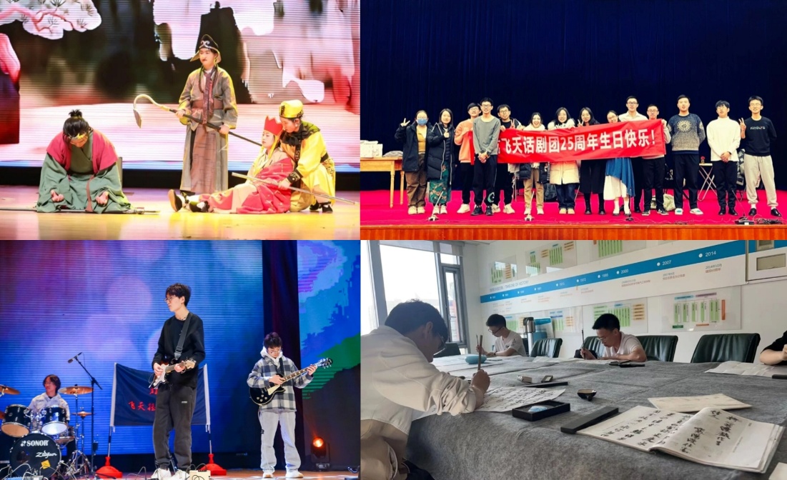 飞天艺术团还积极参与校内重大文化活动。参与北航原创音乐剧《罗阳》首轮演出,缅怀“航空报国英模,传递爱岗敬业、为国奉献的精神力量航向未来毕业晚会上献上合唱表演,为毕业生带去“空天报国、逐梦远航温馨祝福;成功举办飞天话剧团二十五周年短剧专场,以《科研路上的青春》等原创剧目展现新时代青年的理想与担当,成为思政教育与美育融合的生动实践。