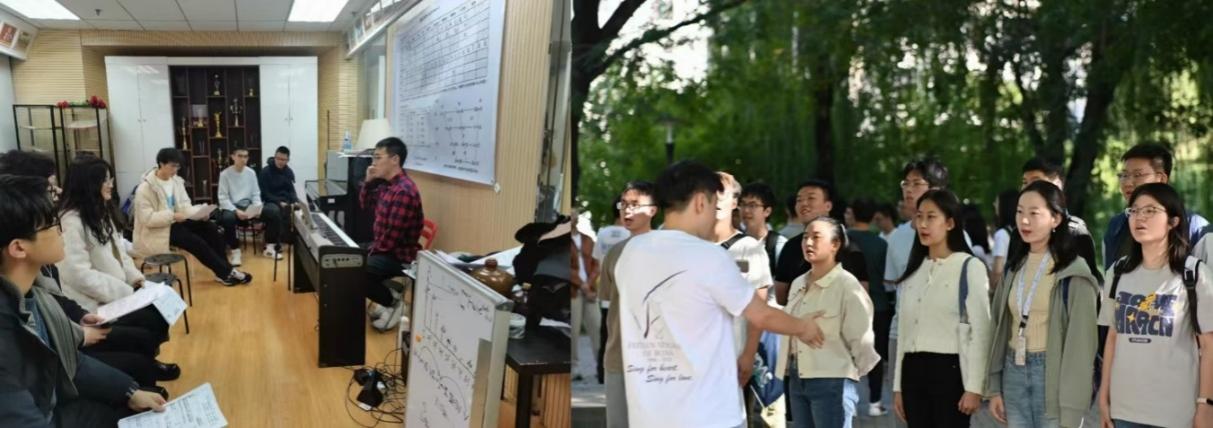飞天艺术团主动走出校园,将“飞天美育品牌与思政理念传递到更广阔的舞台:在梦幻水立方通江同唱电影之歌“五一”公益合唱活动中,团员们以《劳动托起中国梦》等歌曲传递劳动精神,用艺术凝聚时代力量,吸引现场观众超5000人;走进沙河于辛庄小学开展“艺术点亮童心合唱支教,通过空天知识小课堂+合唱排练的形式,将艺术之美与空天报国的种子播撒在孩童心中,惠及小学生200余人次;在798艺术中心开展青春向祖国告白公益快闪活动,以《我和我的祖国》等歌曲传递青春正能量,让美育成果服务社会;排演《永不消逝的电波》等红色剧目,以艺术实践厚植思政底色。系列活动既提升了团员的艺术实践能力,更扩大了飞天品牌的社会影响力,让北航空天报国精神通过艺术形式走向更广阔的舞台。