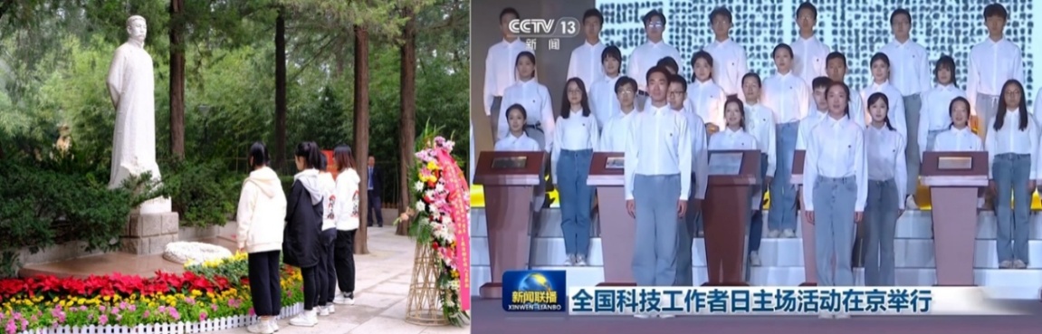 近年来,学院系统性组织校外美育参访活动30余场,覆盖中国美术馆、韩美林艺术馆、北服民族服饰博物馆、国家大剧院等重点文化场馆,参与学生超300人次。这些参访并非简单的观光游览,而是精心设计的沉浸式思政教学”:在科技传播中心钱学森主题星光阅享汇读书会中,同学们通过参观钱学森与两弹一星展览、深度阅读《钱学森传》、聆听航天专家分享,领略钱学森等老一辈科学家干惊天动地事,做隐姓埋名人的奉献精神,进一步坚定空天报国的理想信念;在中国美术馆《开国大典》油画前,艺术专业老师现场讲解作品的创作背景与历史意义,引导学生回望新中国光辉历程,强化“强国一代的使命担当;在永恒丰碑——唱给先烈的赞歌主题活动中,同学们在李大钊烈士陵园雕塑前敬献花篮、驻足敬礼,在缅怀革命先烈中感悟初心使命,坚定听党话、跟党走的理想信念。