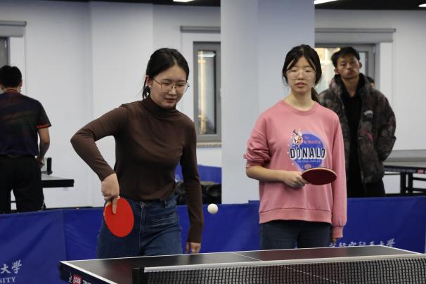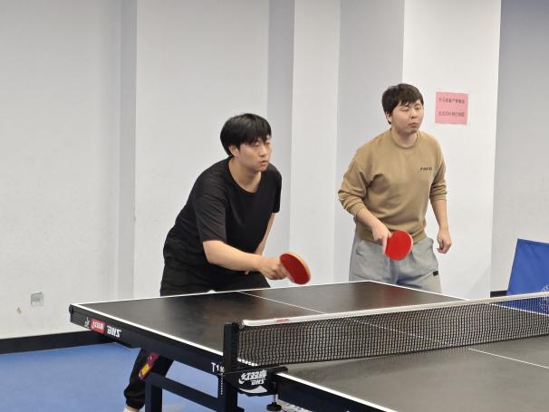 颁奖仪式后,一场别开生面的师生交流赛随即展开,师生们在轻松的氛围中切磋技巧,银球的跃动与师生的畅谈交织,让方寸球台成为跨越师生身份的交流纽带。