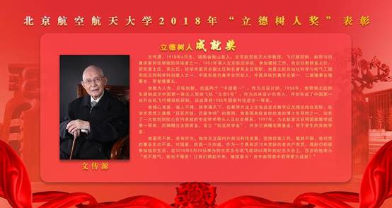 2018年,北京航空航天大学召开庆祝第34个教师节暨第二届“立德树人奖”表彰大会。我院文传源先生获评“立德树人成就奖”,林岩教授获评“立德树人优秀奖”。